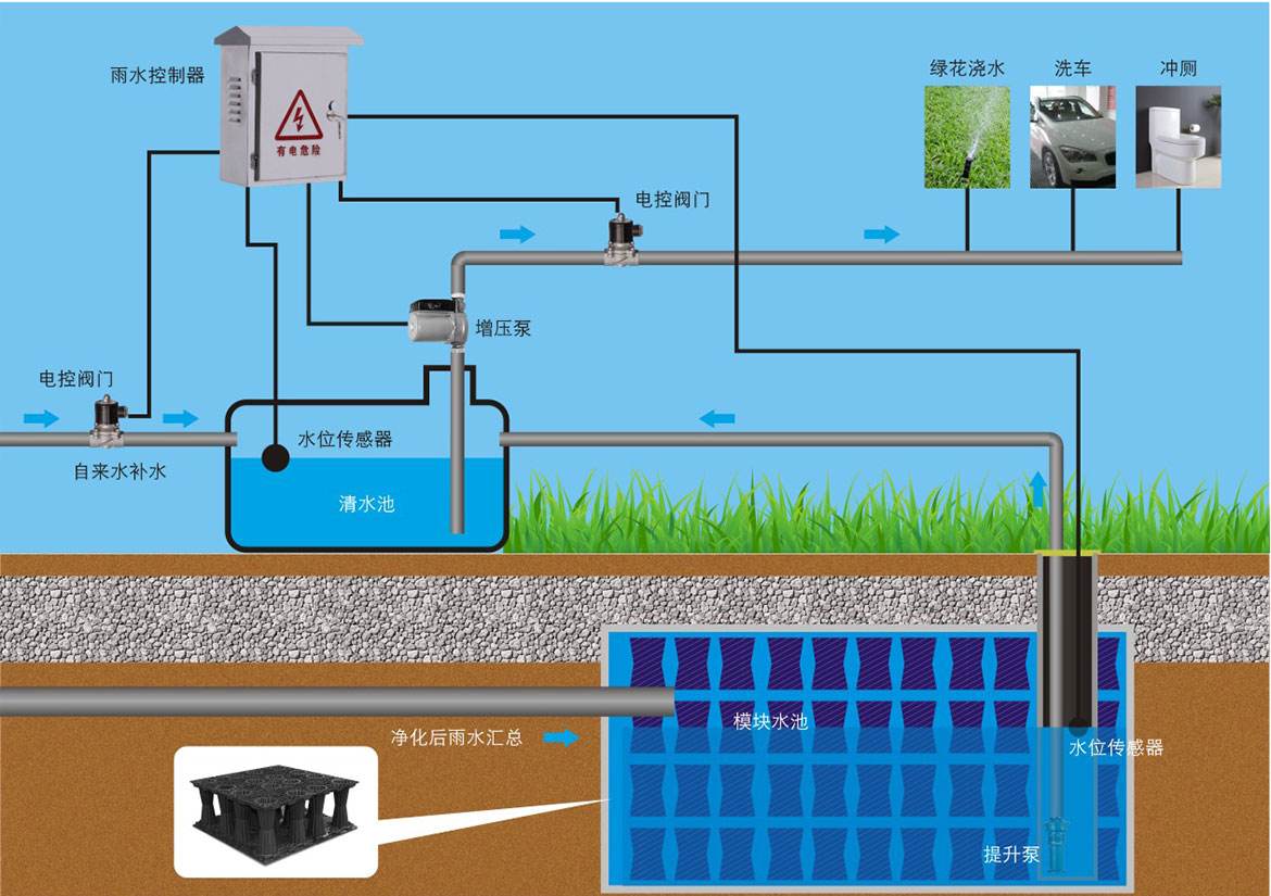 雨水收集利用是將路面和建筑屋面的雨水徑流,經過收集系統(tǒng)收集,進入儲水池,再經沉