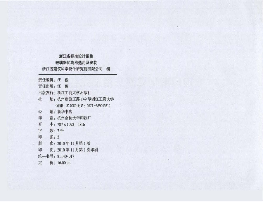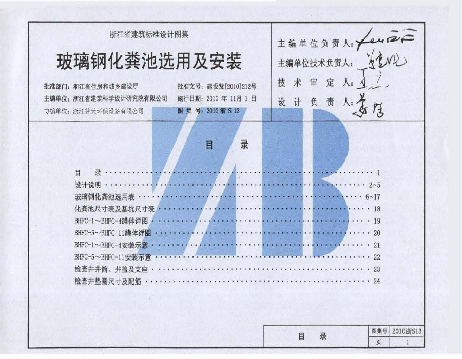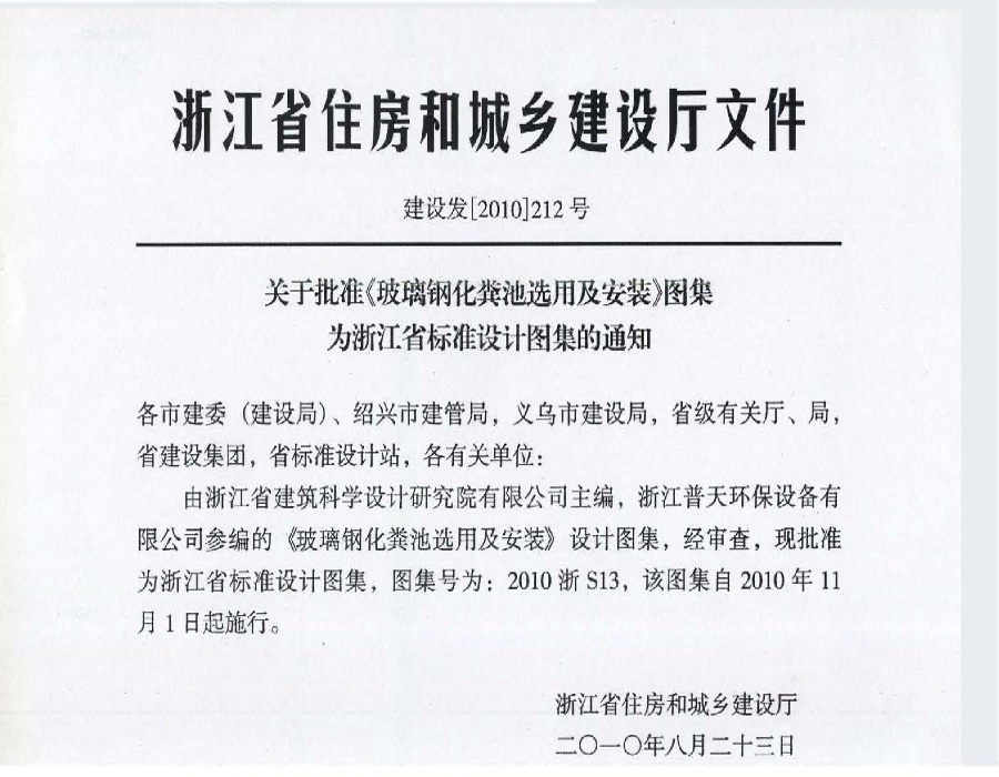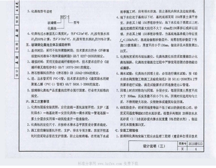 2010浙S13 玻璃鋼化糞池選用及安裝