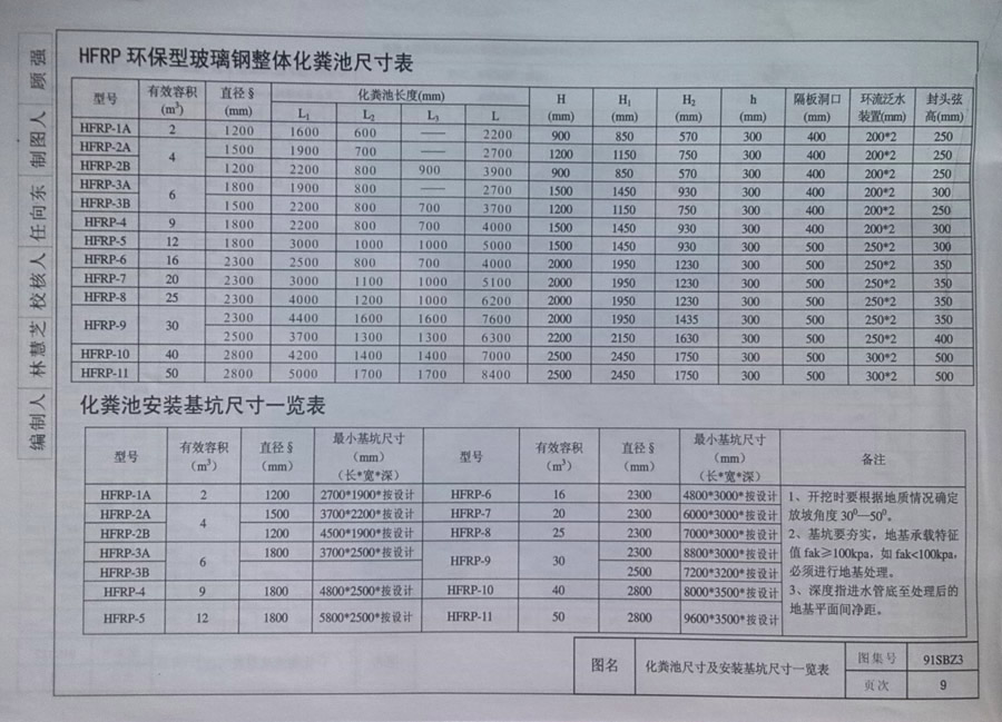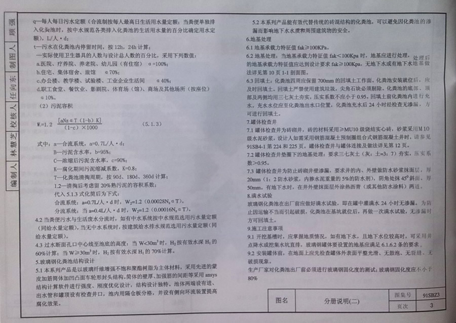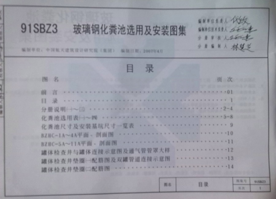 91sbz3(2007)玻璃鋼化糞池選用及安裝圖集