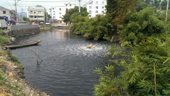 由于河道污染的復(fù)雜性,為了從根本上解決黑臭問題。專家組決定采取物理、化學(xué)、生物多種方式進(jìn)行綜合治理,主要包括早期的人工河道清淤、生物復(fù)合酶的投放、化學(xué)藥物的針對性治理,利用嘉華生物凈化池層層凈化農(nóng)村生活污水并阻斷工業(yè)污水,中期通過引水換水、加速水流通等辦法加速微生物分解有機(jī)物進(jìn)程近一步凈化水體,最后通過曝氣復(fù)氧以及環(huán)保船只例行維護(hù),在凈化河道之后給予更長久的保護(hù)。