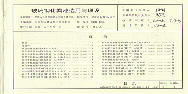 “玻璃鋼化糞池選用與埋設(shè)”國(guó)家建筑標(biāo)準(zhǔn)設(shè)計(jì)圖集14SS706,經(jīng)中華人民共和國(guó)住房和城鄉(xiāng)建設(shè)部批準(zhǔn)為國(guó)家建筑標(biāo)準(zhǔn)設(shè)計(jì),自2014年9月1日起實(shí)施