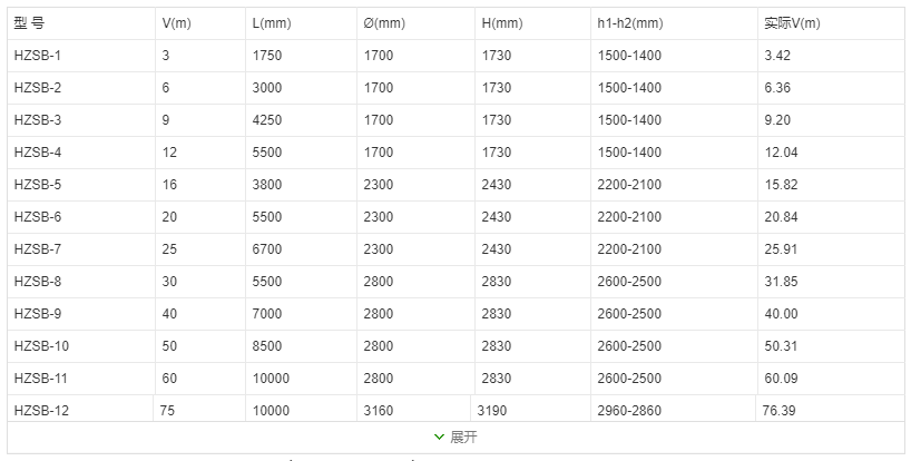 說(shuō)明:V為容積 h1-h2為進(jìn)、出水孔的高度 L為長(zhǎng)度 H為高度